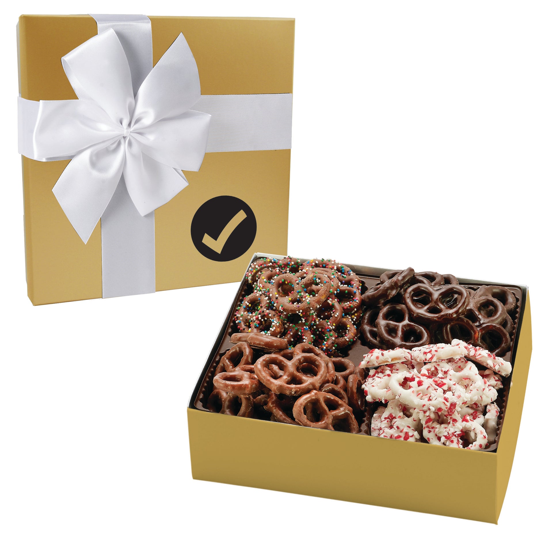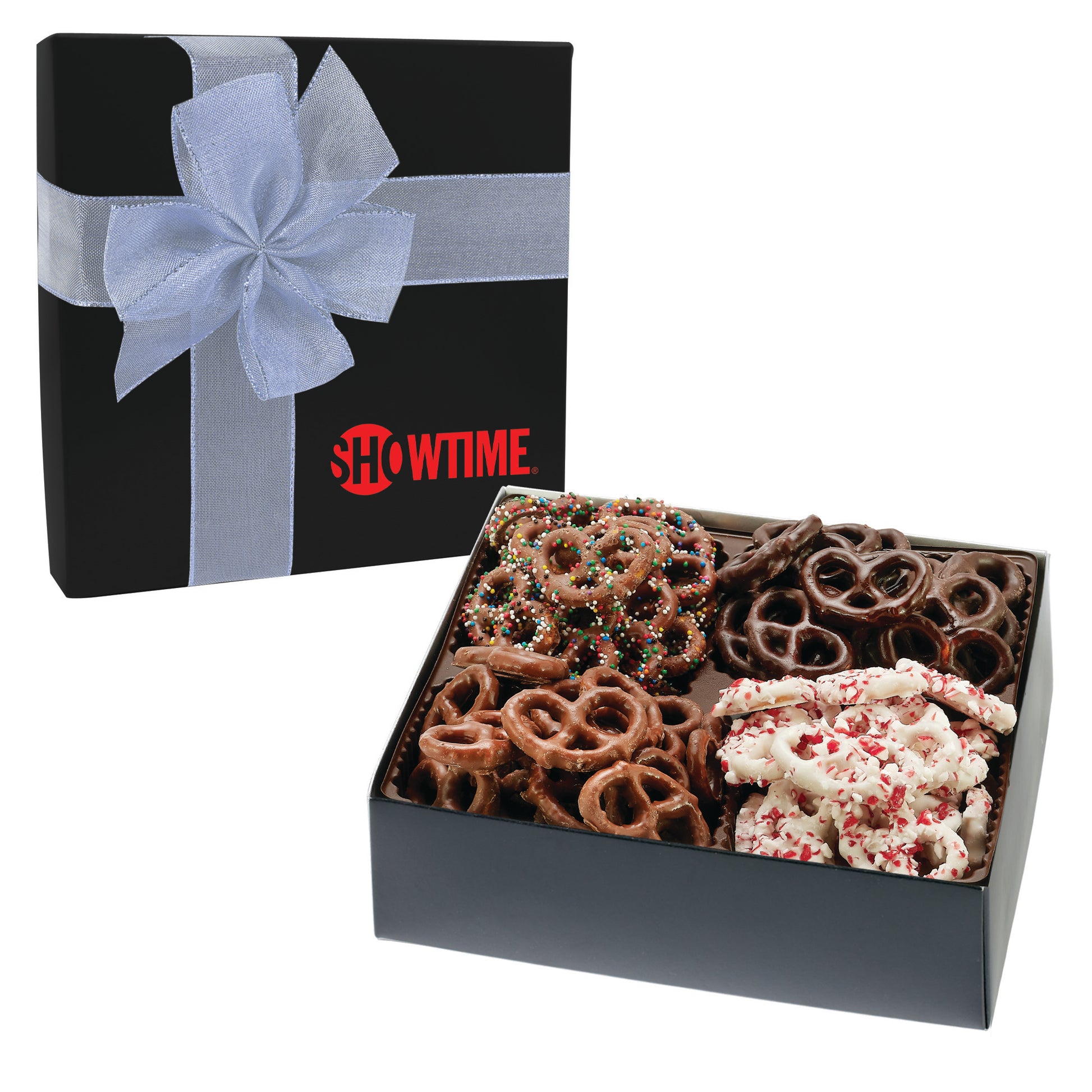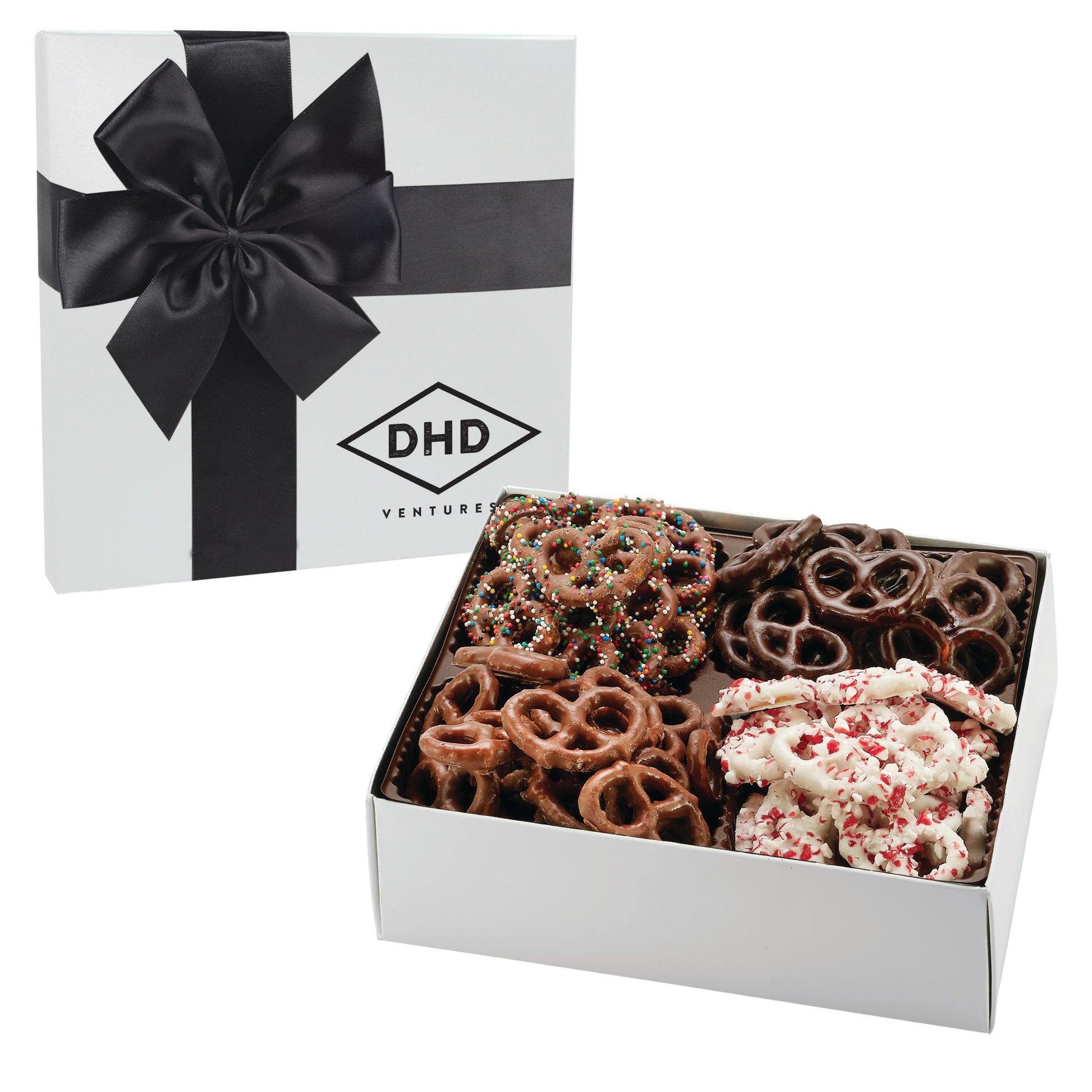 Sweet & Salty Sensation is a decadent 4-way gift box featuring a variety of enrobed pretzels, each one more delicious than the next.