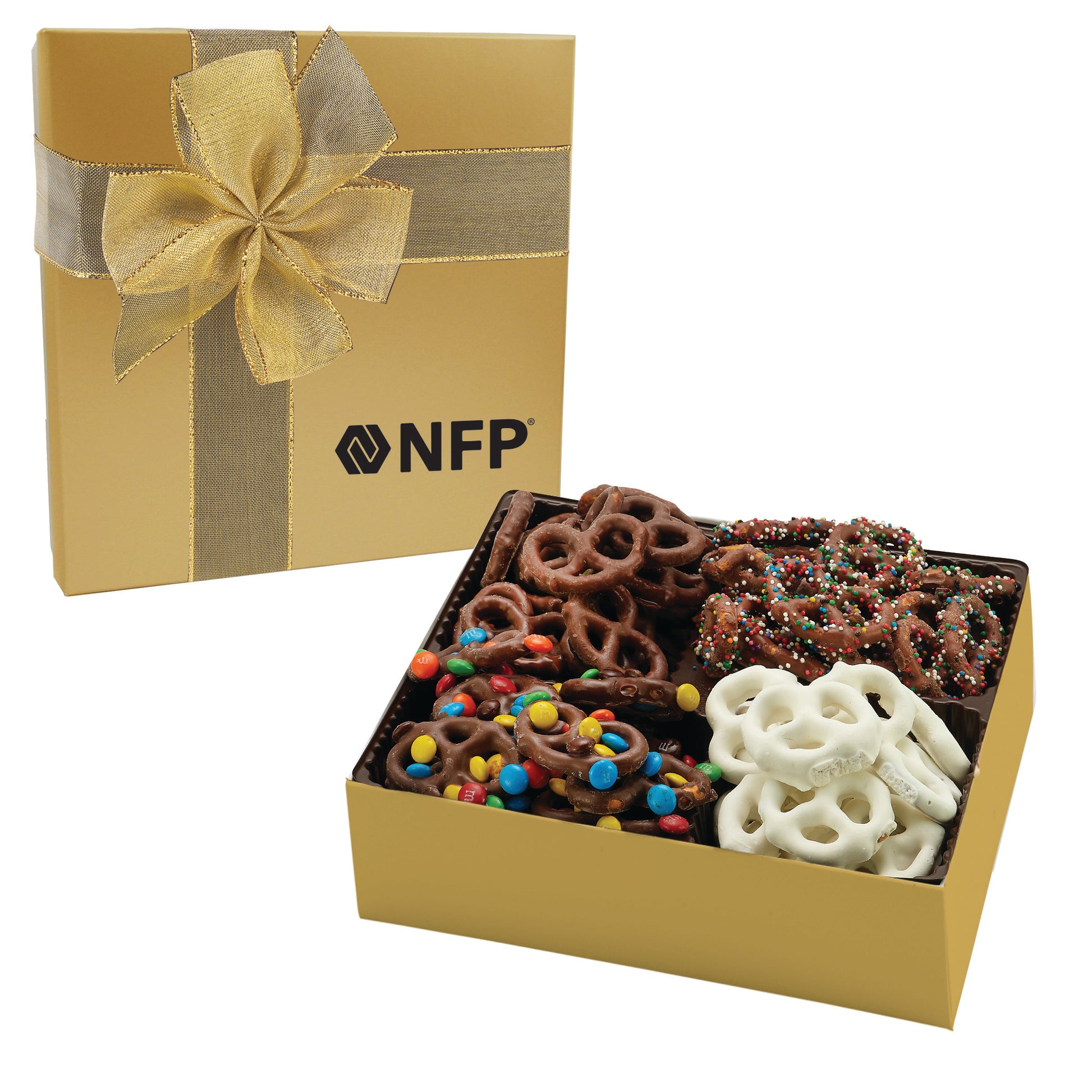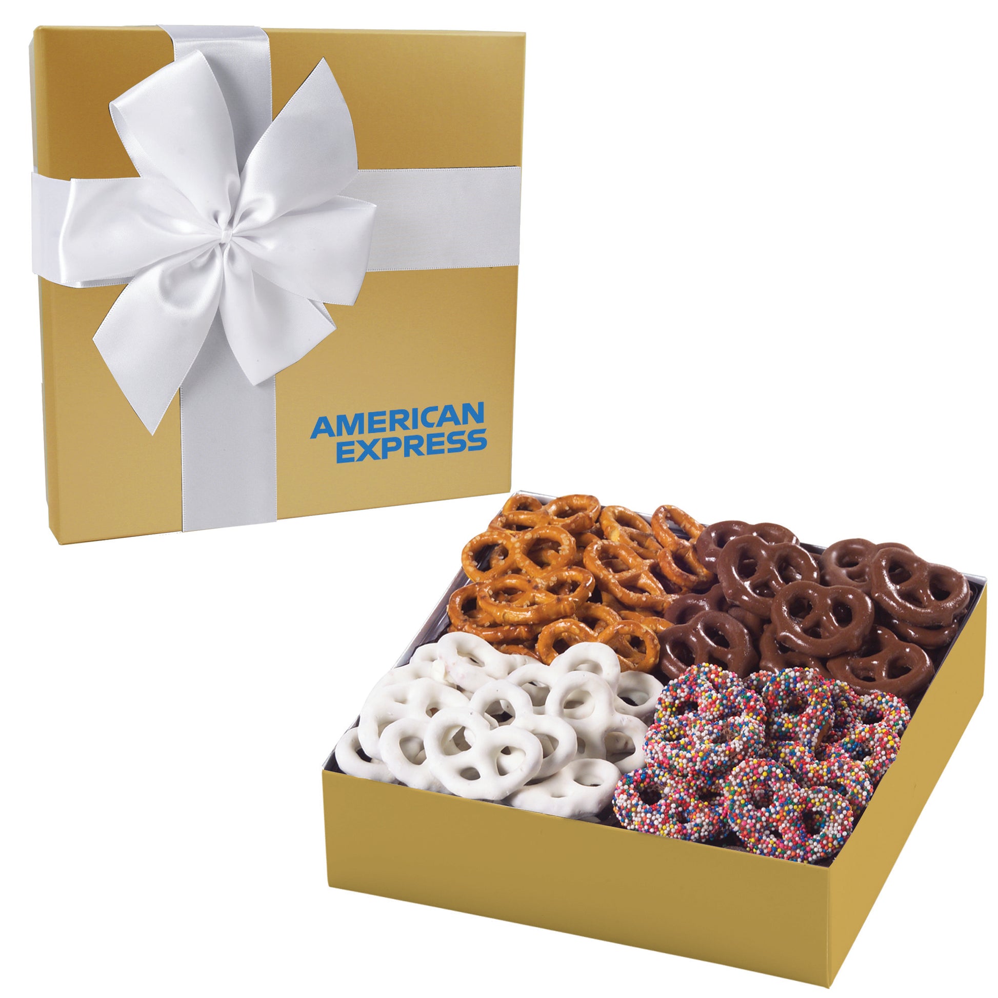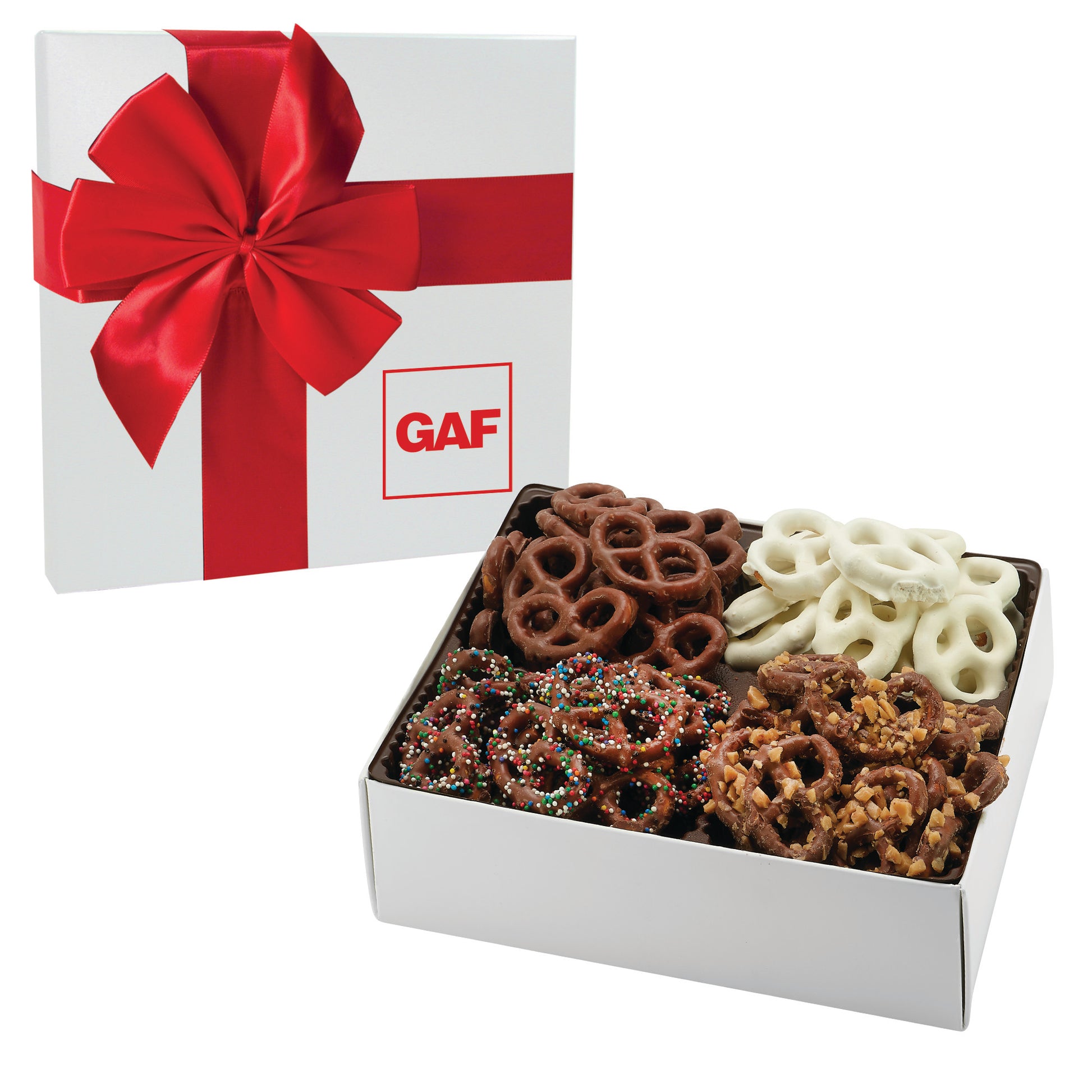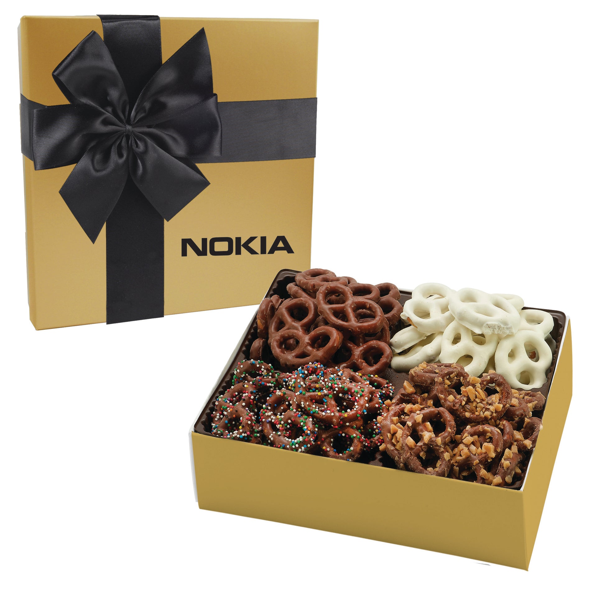 Sweet & Salty Sensation is a decadent 4-way gift box featuring a variety of enrobed pretzels, each one more delicious than the next.