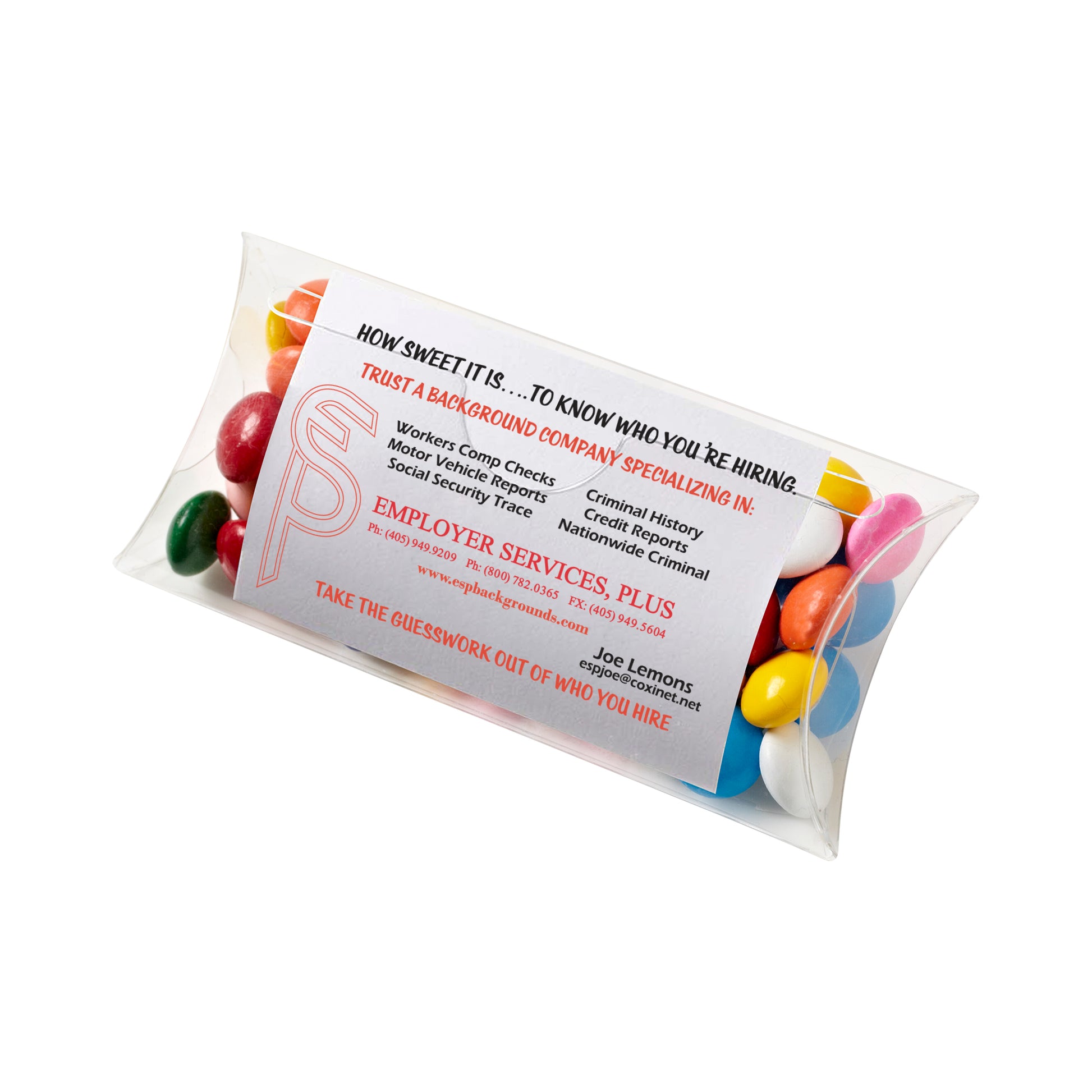 Promote your business the right way with this candy case. Provide your own business card and it can be inserted at no extra charge, or have us create one for you. Perfect for tradeshow promotions and conferences.