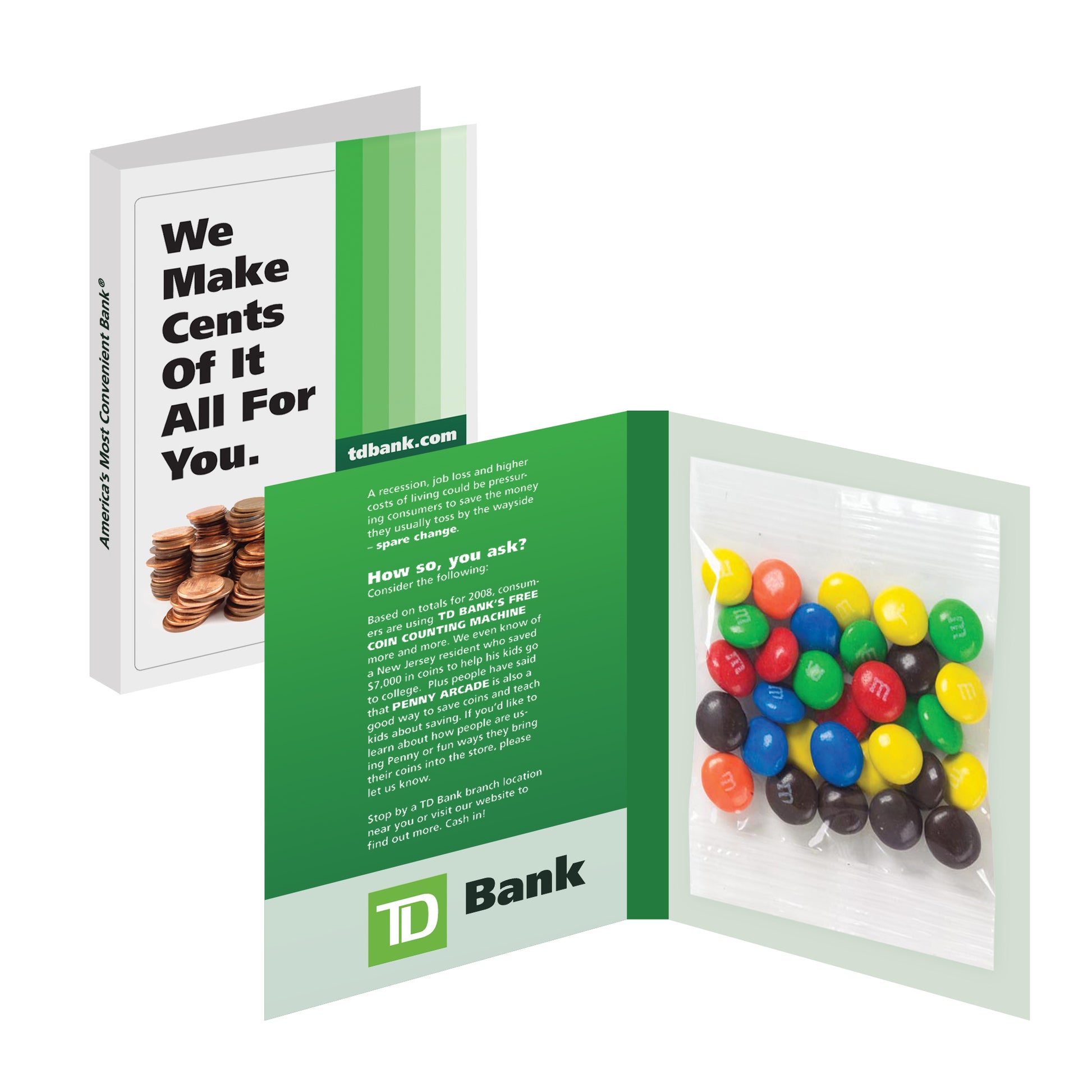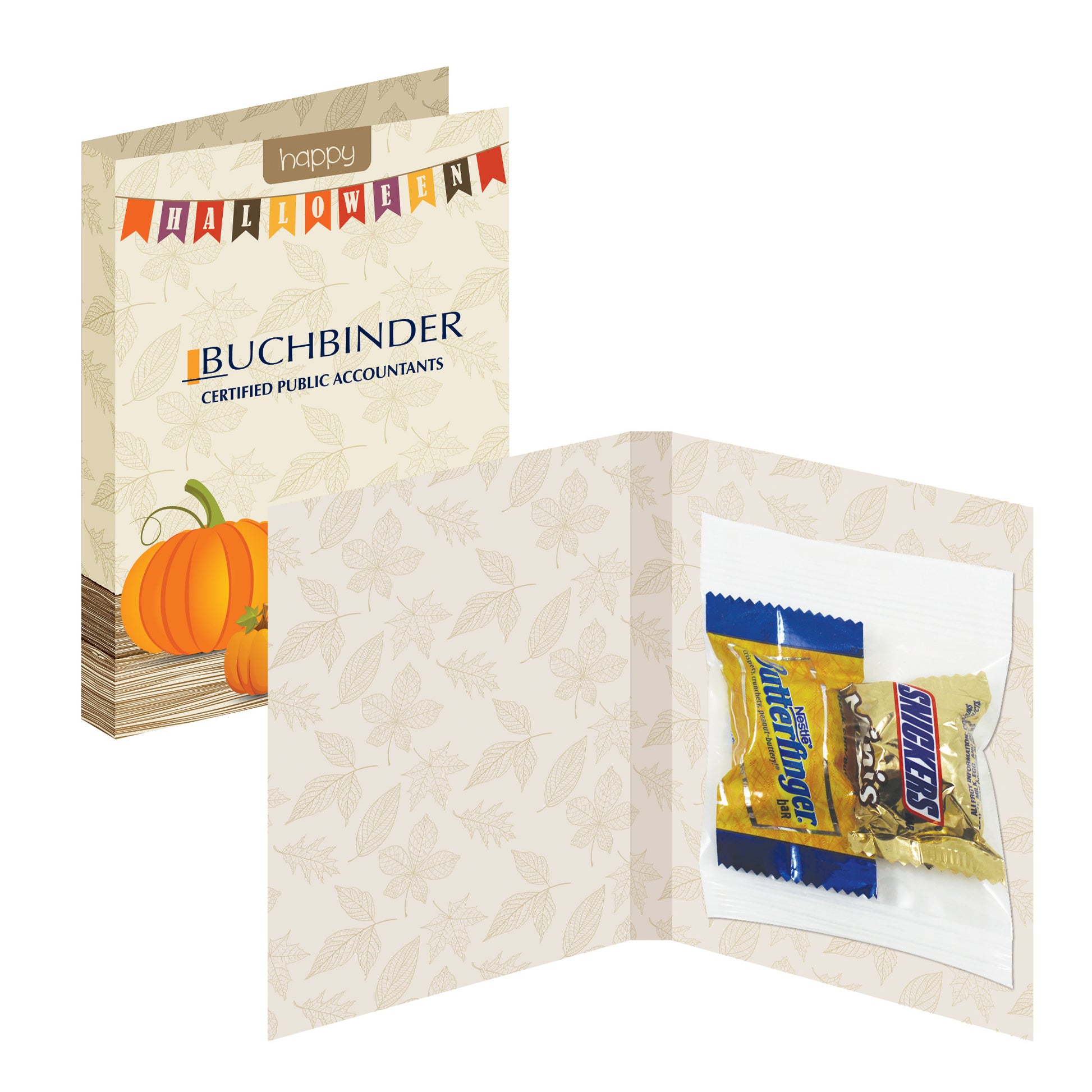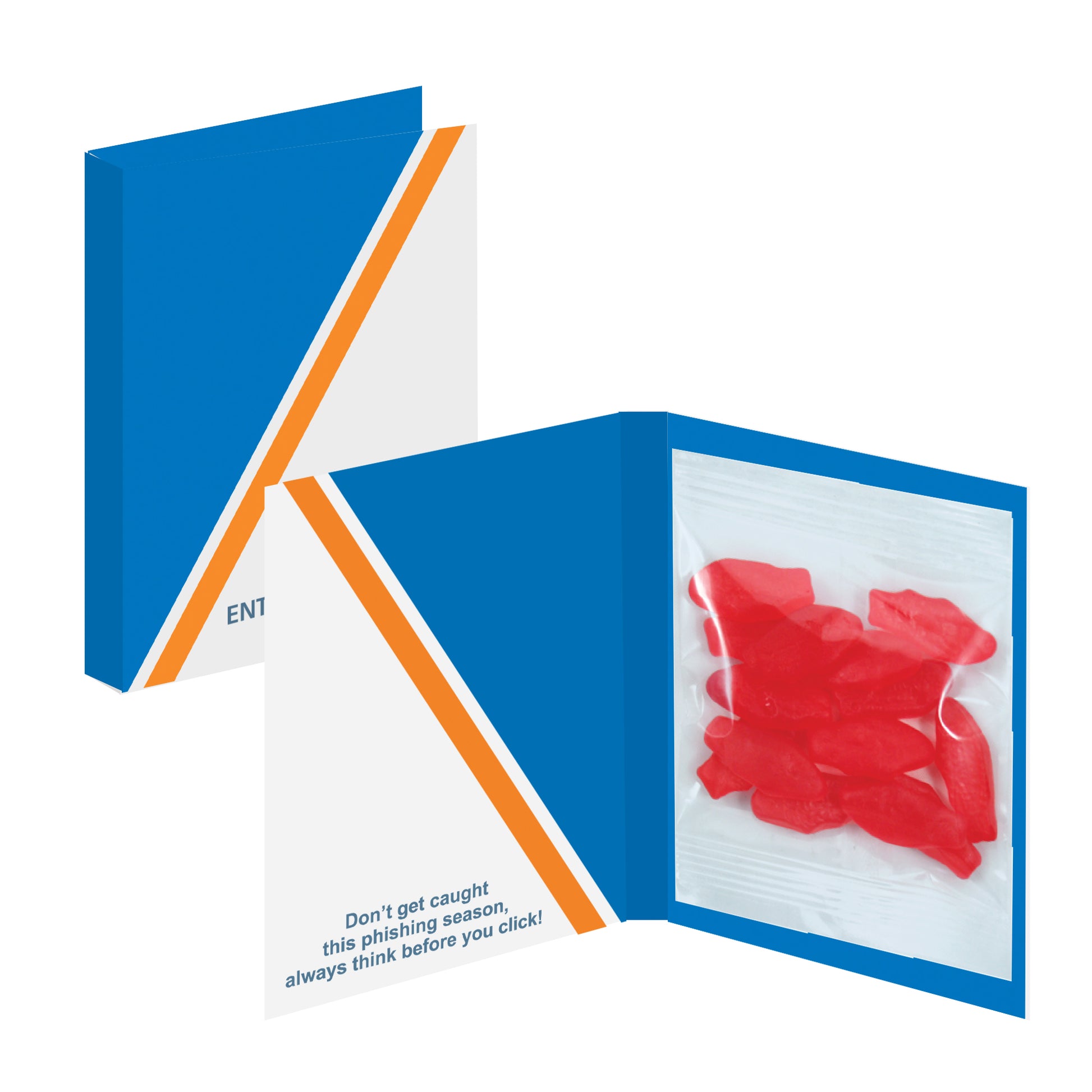A customizable, flat-pack treat card that pairs your message with a small candy pack.